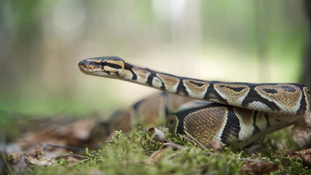 These snakes are nocturnal hunters. Thanks to the flexible connection between their upper and lower jaws, they can open their mouths up to 160 degrees and swallow prey thicker than their own bodies, from birds and monkeys to small pigs and deer. While they eat, their skin and muscles stretch and their internal organs shift without interrupting blood flow. Small prey can be swallowed in minutes, while larger animals may take one to two hours. Digestion can last up to two weeks, after which the python’s body returns to its normal size.