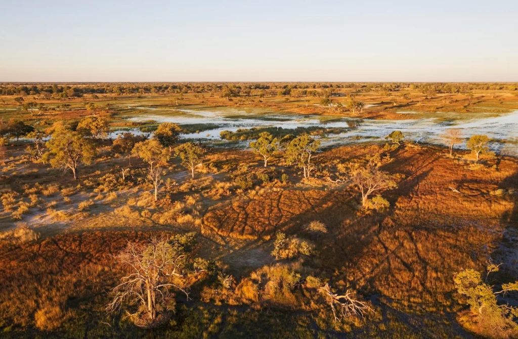 Visitors explore the delta’s waterways in traditional mokoro canoes, allowing close encounters with animals as they come to drink. Moremi is particularly rich in elephants, as Botswana is home to the world’s largest elephant population. Traveling through the river channels also offers the chance to spot lechwe antelope, uniquely adapted to life in wetland environments.