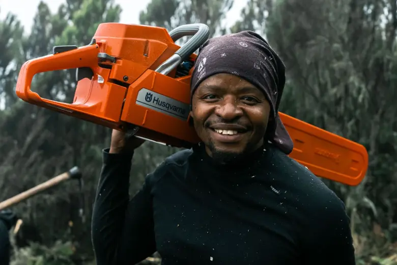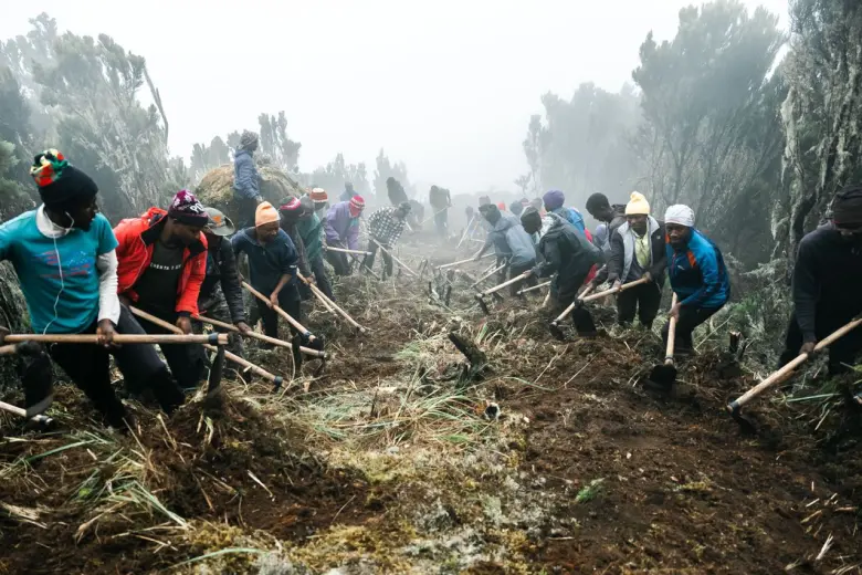 In 2020 and 2022, major wildfires burned thousands of hectares on Kilimanjaro.During those fires, more than 200 of our guides, porters, and managers joined park rangers and volunteers to dig firebreaks and help protect camps and trails.